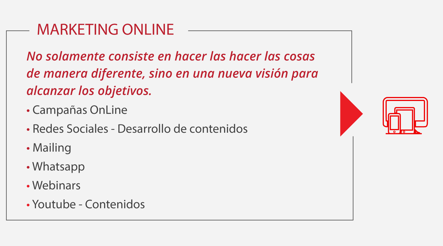 Aquí puede encontrar ideas frescas y efectivas para su negocio, nuestro diferenciador es que acompañamos sus proyectos con profesionales proactivos expertos en MERCADOTECNIA, VENTAS Y COMUNICACIÓN.
